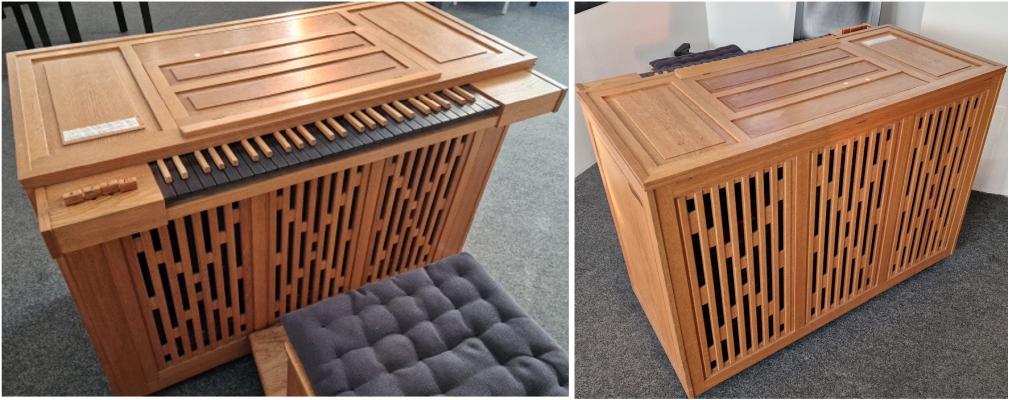 | Manual C-g3 Holzgedackt 8’ Rohrflöte 4‘ | Orgelportativ Mechanische Spiel- und Registertraktur |